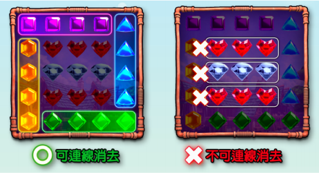 - 当宝石连线时,未连线的相同宝石也会一同消去。