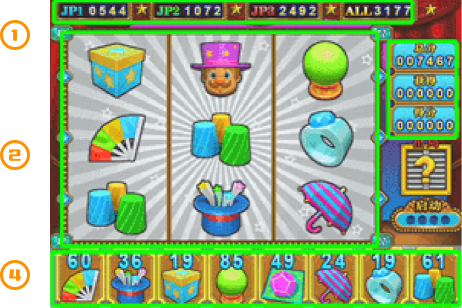 - 上部悬赏区显示[JP1]、[JP2]、[JP3]和全盘奖[ALL]奖励的代币数量(①)