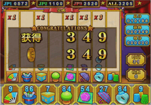 游戏中需投币,代币经过面板下方图案通道即可累积奖励。代币用完或倒计时结束,叠叠乐结束。所有累积图案分数之和为叠叠乐奖励