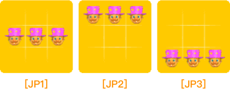 3个小丑连成一条线,分别奖励[JP1]、[JP2]、[JP3]对应数量的代币
