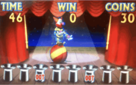 进入帽子游戏后,倒计时内需投币进入帽子通道:帽子对应所有水果分数之和为奖励掉币数:投币掉入out帽子或倒计时结束,帽子戏法结束